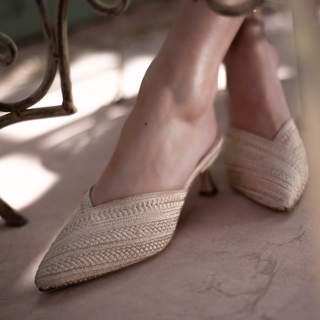 Materials are consciously chosen by the team, they are eco-friendly and dyed using vegetable scraps and spices. Every pair is hand-made by a cooperative in Morocco dedicated to supporting local women from underserved communities to build a sense of confidence and self worth through work.