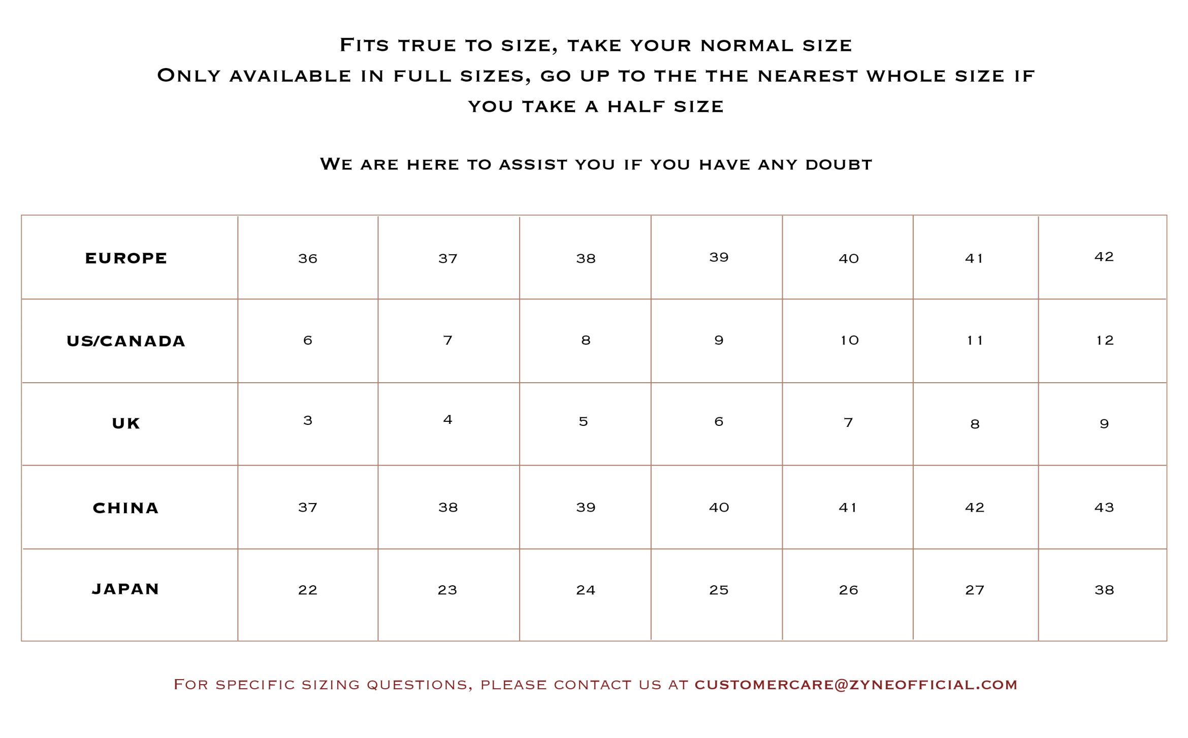 100% handmade from natural materials, your ZYNE shoes need care, extra love and attention. When exposed to water, the materials may start to break down. We therefore suggest you keep them warmly inside on rainy days. Avoid exposing your shoes to excessive heat and sunlight.